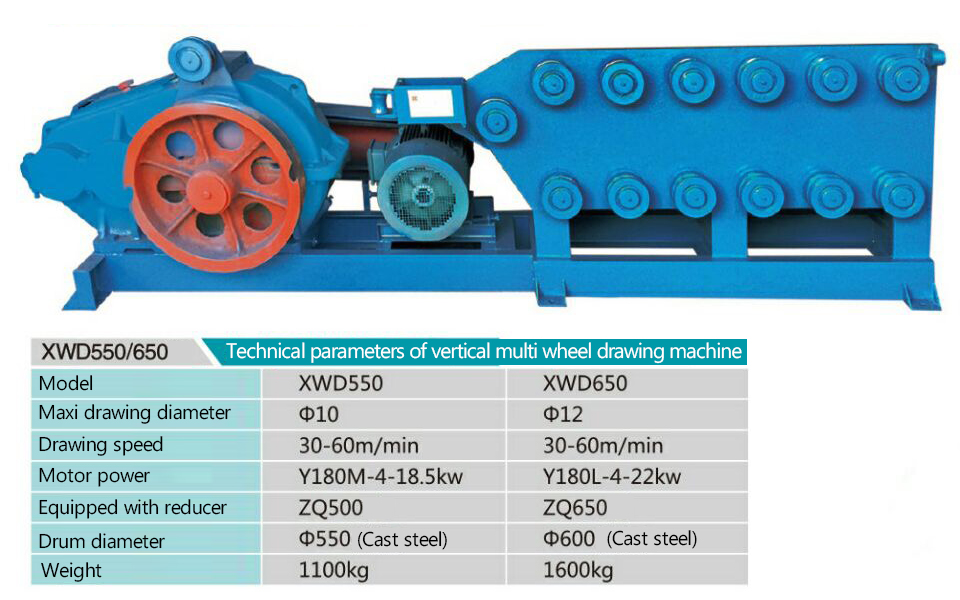 Xwd550, 650 vertical multi wheel drawing machine